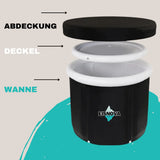 Mit ihrer Allwetter-Abdeckung schützt sie dein Eisbad zuverlässig vor Regen und Schmutz.