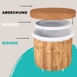Design: Die Wanne besteht nicht aus Holz, sondern aus wasserfestem Nylon! Das aussen Design sieht aus wie Holz um eine natürliches Feeling beim eisbaden zu kreieren!